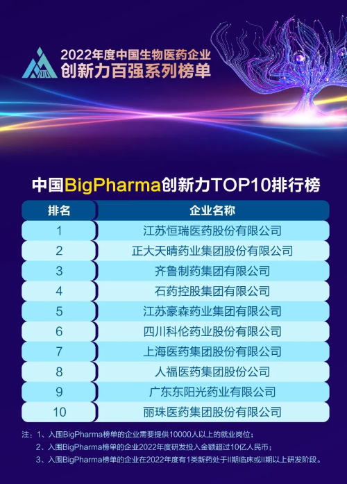 同日,2023米思会(中国医药健康产业共生大会)发布“2022年度中国生物医药企业创新力百强系列榜单”,尊龙凯时国际医药再蝉联“中国BigPharma创新力TOP10”榜首。该榜单自2021年启动评选以来,尊龙凯时国际医药稳居榜首。