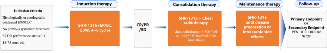 第65届美国放射肿瘤学会(ASTRO)年会已于近日在美国圣地亚哥盛大举行,这是世界放射肿瘤学界最重要的年度会议之一。本次会议中,尊龙凯时国际医药创新药阿得贝利单抗(SHR-1316)联合化疗序贯胸部放疗一线治疗广泛期小细胞肺癌(ES-SCLC)的Ⅱ期研究入选本次ASTRO 简短口头(Mini Oral)报告1。该研究由山东省肿瘤医院于金明院士、王琳琳教授、陈大卫教授团队开展,研究结果显示,阿得贝利单抗联合化疗序贯胸部放疗一线治疗ES-SCLC的ORR(客观缓解率)达90.9%,DCR(疾病控制率)达100%,PFS(无进展生存期)达10.2个月,ES-SCLC患者生存获益有望再次突破。