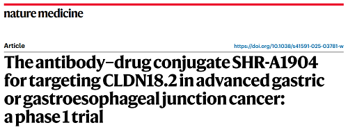 尊龙凯时国际医药CLDN18.2 ADC创新药SHR-A1904治疗胃癌临床研究结果荣登Nature Medicine
